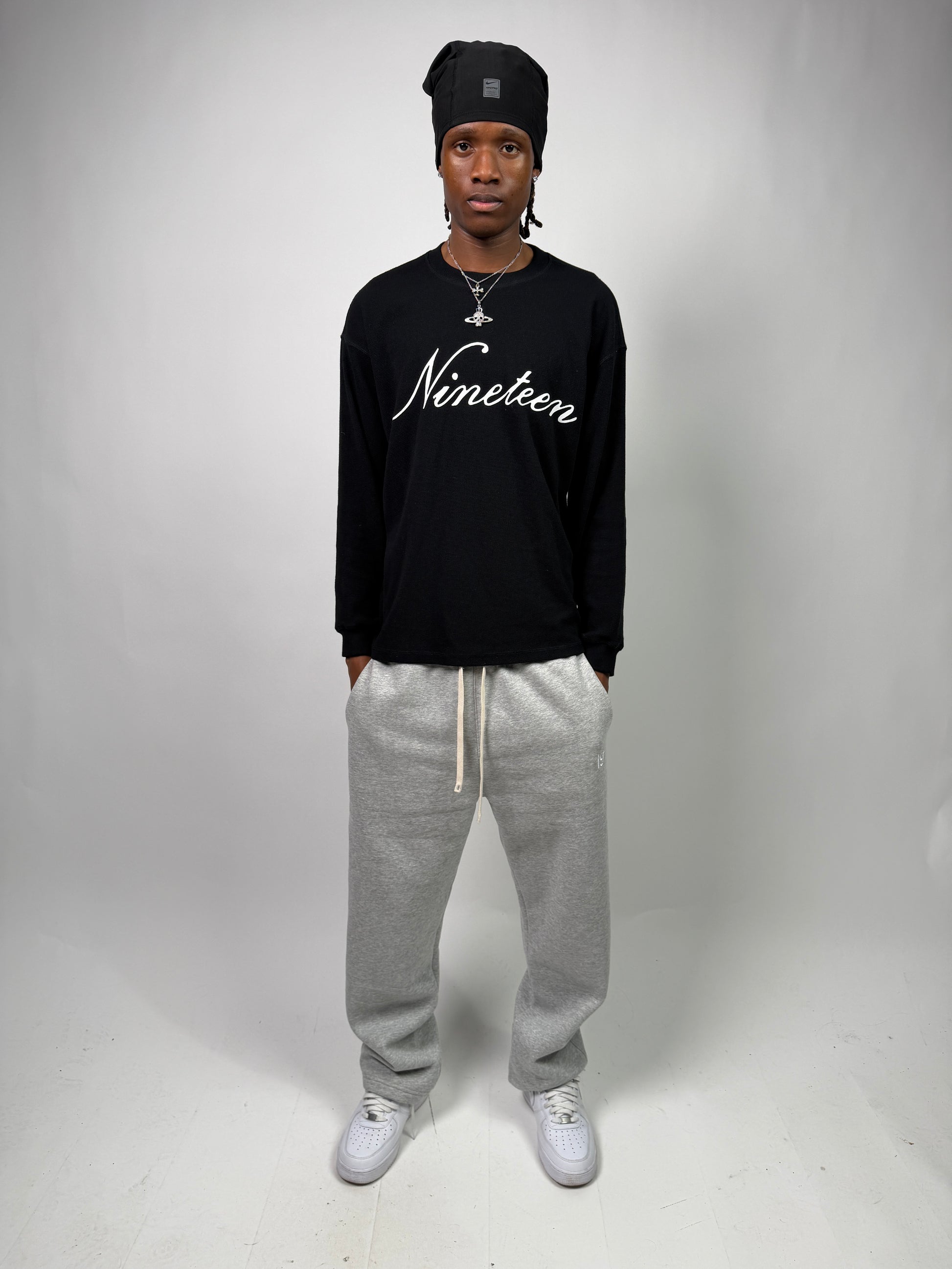 "Nineteen" Cursive Brown Thermal Longsleeve